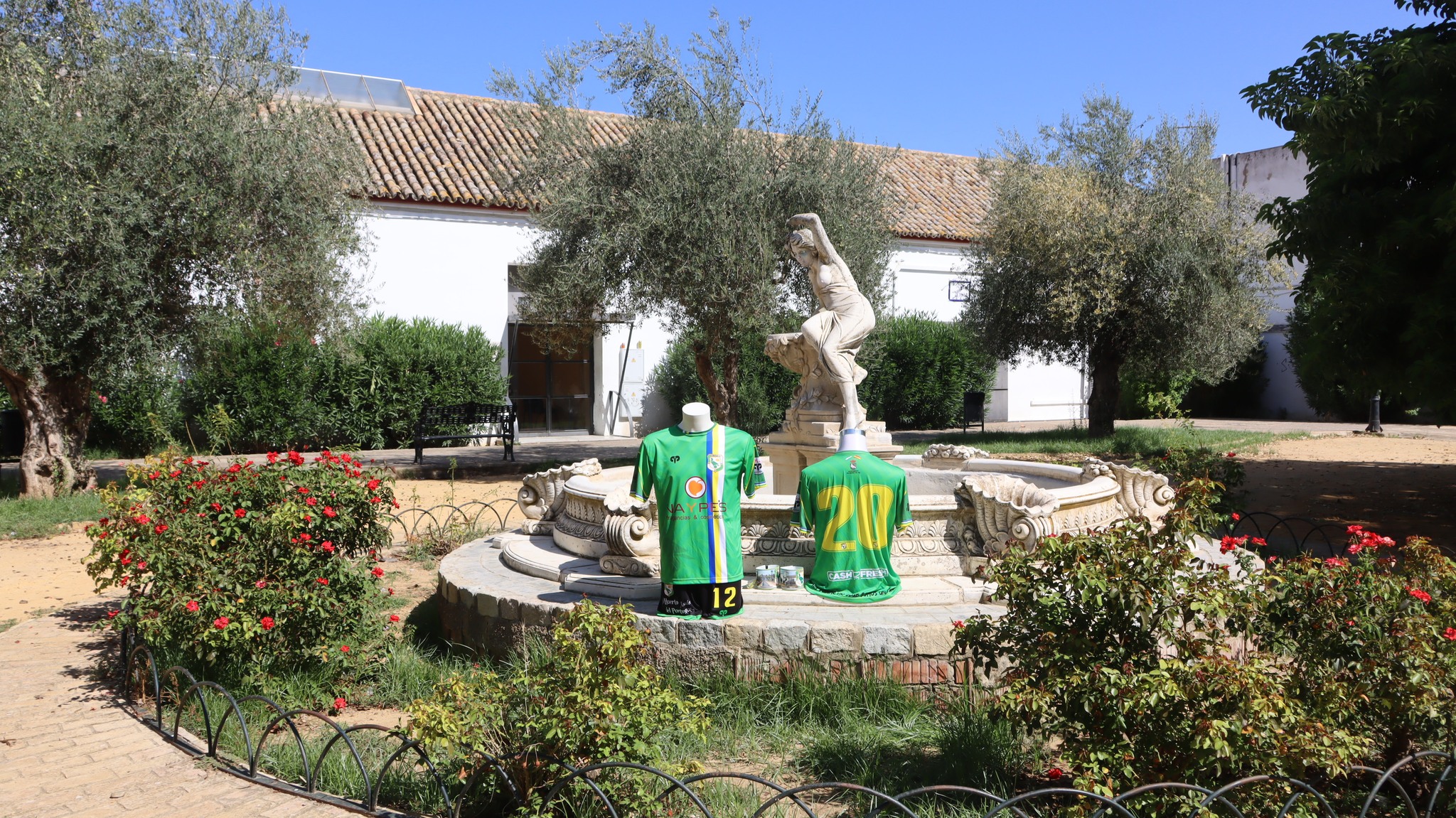 La bandera de la localidad queda también representada en la propia camiseta que, a la espalda, lleva además el escudo municipal acompañado de la bandera de Andalucía y España. El lema actual del club, “no somos un club, somos un pueblo” es la serigrafía que ocupa la parte trasera de la elástica.