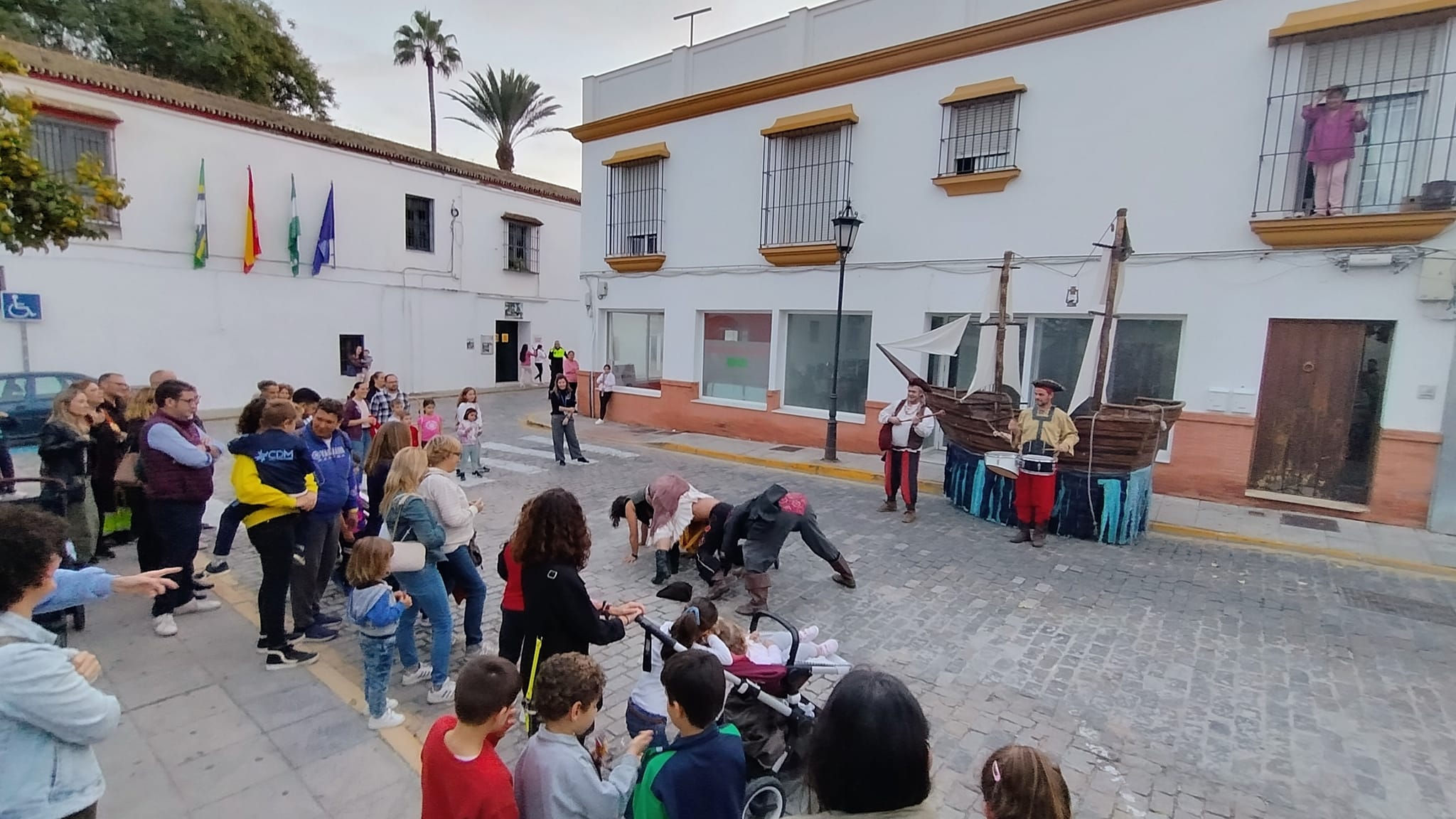 Termina la primera jornada del III Festival Teatro de Calle Palomares del Río, con el espectáculo de "Los Piratas en búsqueda del Gran Tesoro" por las calles de Palomares, de la Compañía de Teatro Vagalume y con la actuación de #RolandoRondinelli Típ Tap Poum, en los Baños Árabes.