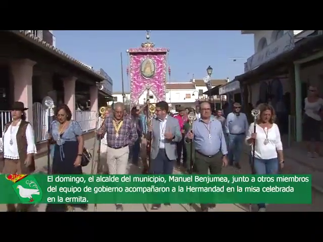 El alcalde de Palomares del Río, Manuel Benjumea, así como otros miembros del Equipo de Gobierno y la Corporación municipal, ha acompañado este domingo a los peregrinos que han visitado junto a la Hermandad del Rocío de la localidad la ermita donde reside la Blanca Paloma.