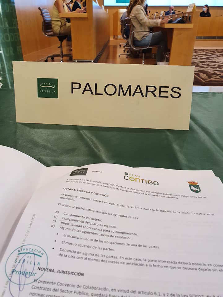 Esta mañana la Alcaldesa, Ana Isabel Jiménez, ha acudido a la firma del Convenio para desarrollar el Programa de Simulación de Empresas, que se llevara a cabo en nuestro pueblo dentro del marco del Plan Contigo de la Diputación Provincial de Sevilla.