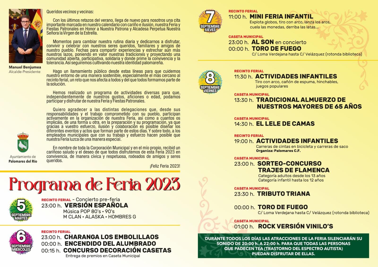 Ya puede consultar la programación completa de la Feria y Fiestas Patronales de Palomares del Río 2023.