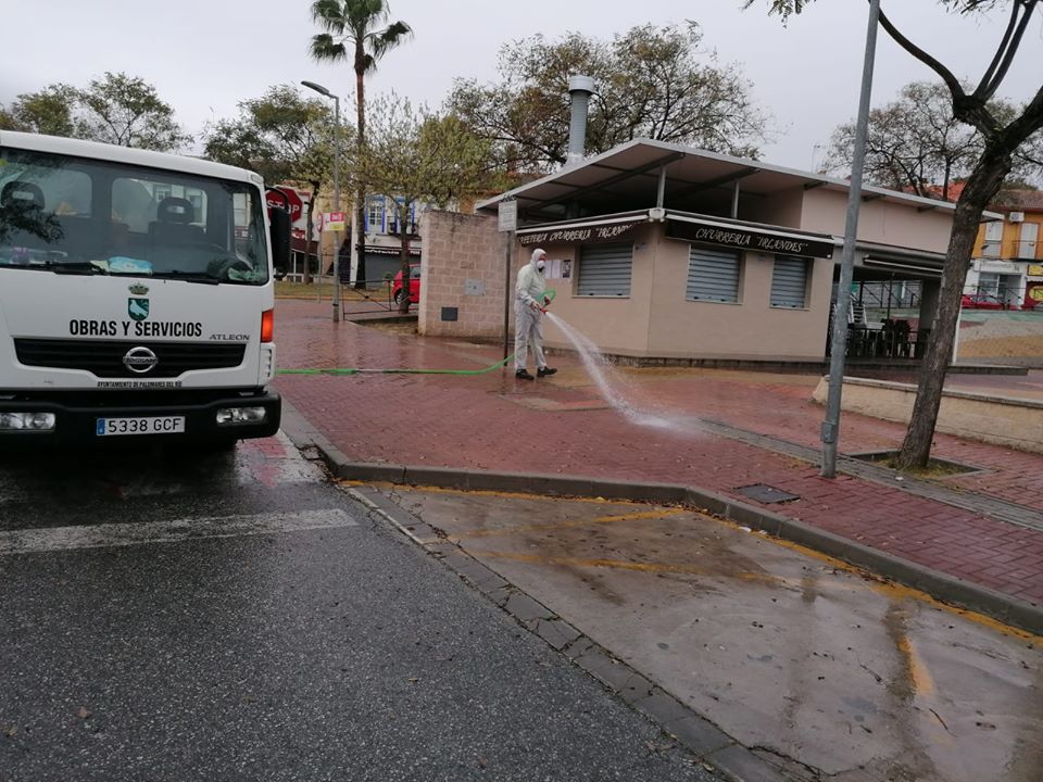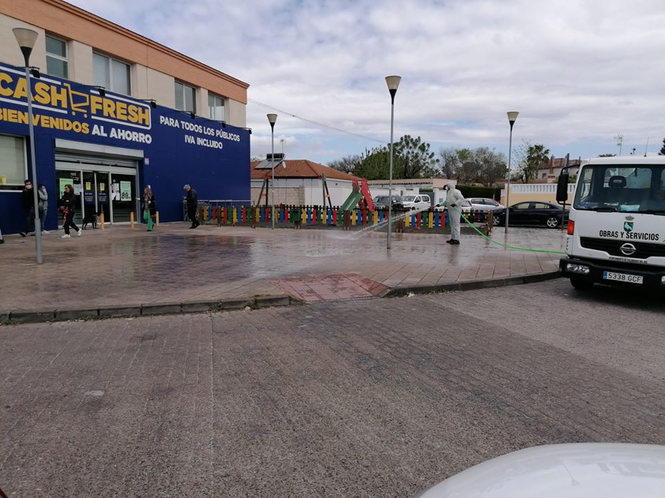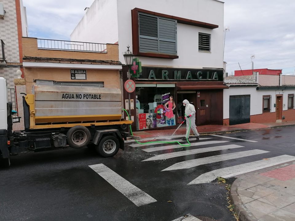 Hoy se ha comenzado, por parte de los Servicios de Limpieza Viaria de nuestro Ayuntamiento, la desinfección de vías públicas, fundamentalmente en aquellas zonas comerciales que permanecen abiertas, al considerarse servicios básicos, así como en zonas de paso de transeúntes, como paradas de bus y también contenedores de RSU.