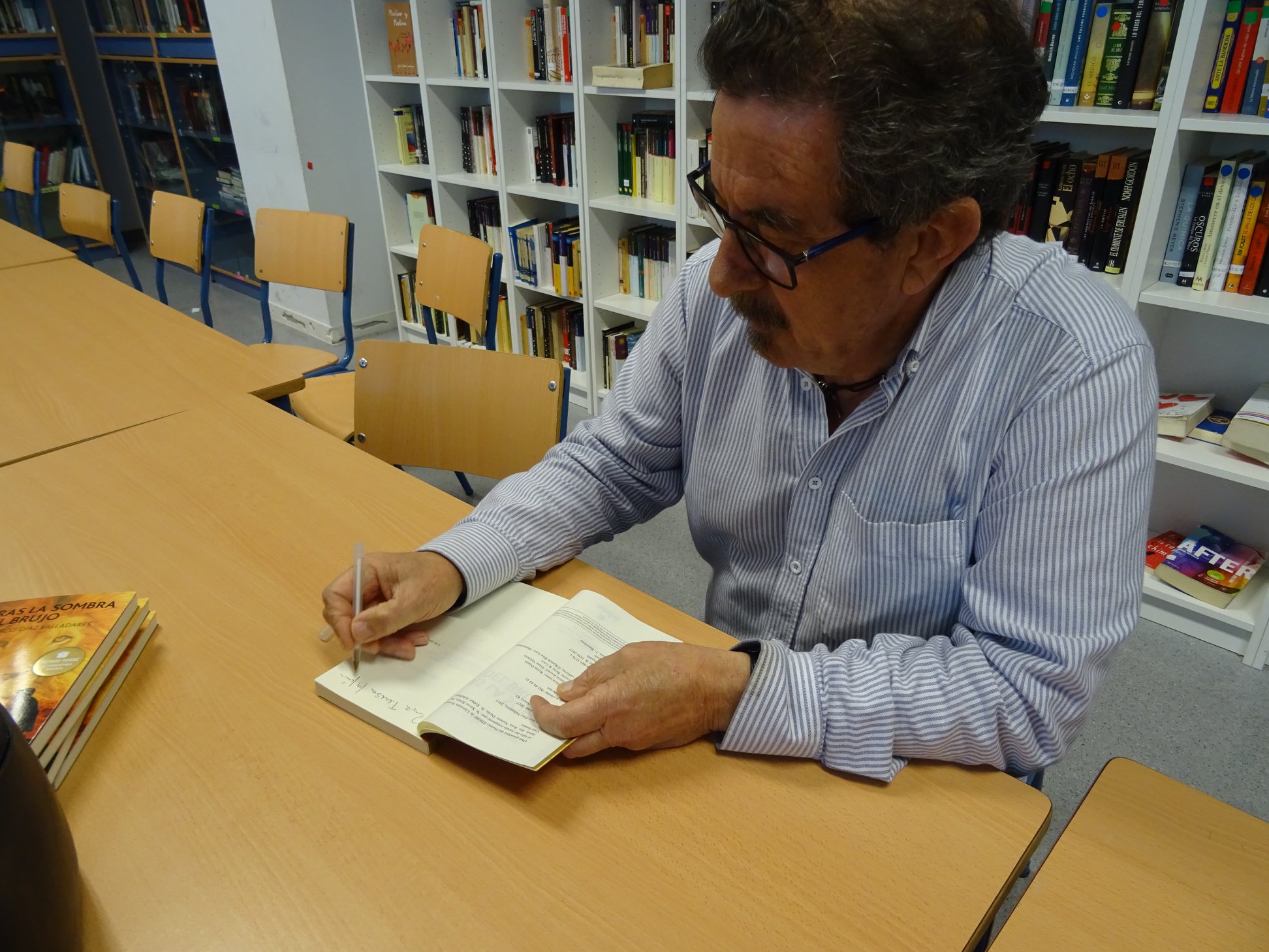 Ayer, los jóvenes que participan en el Programa " El Placer de Leer", que desde el Área de Juventud del Ayuntamiento de Palomares del Río se realiza en nuestro IES Palomares, pudieron disfrutar de la visita de Francisco Díaz Valladares, autor del libro "Tras la sombra del Brujo" (Premio Edebé de Literatura Juvenil).