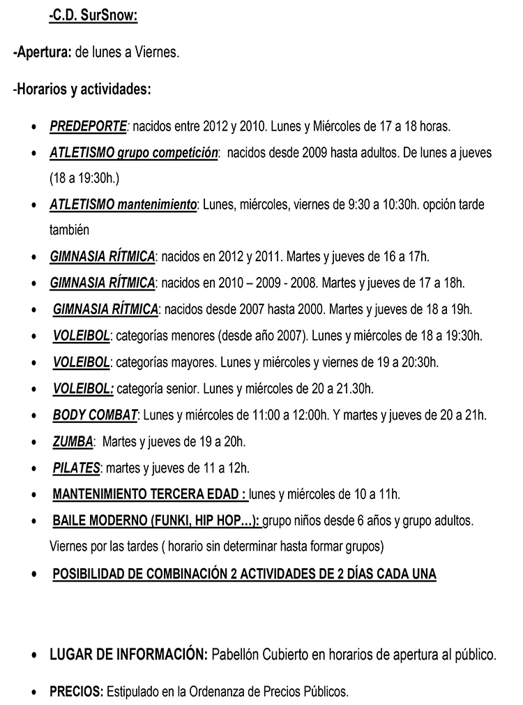 Para más información, puede contactar con la Delegación de Deportes llamando al 955763012, extensión 5.